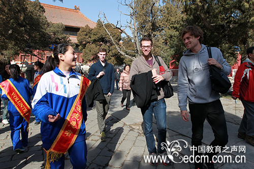 【必威体育官网网页版 3月4日消息】2013年3月3日,北京市东城区国子监中学双语导游志愿者主动用英语为到国子监参观的法国巴黎学区次长一行讲解它的历史。今天,北京市北京一中、国子监中学、汇文中学的双语导游志愿者身穿校服、佩戴“双语导游志愿者”绶带,分别来到钟鼓楼、国子监以及天坛公园,为外国友人、国内游客介绍景点的历史典故,展示东城学子的文明素养和精神风貌。双语导游志愿服务活动是东城区教委中教一科在全区各中学启动“传承雷锋旗帜深化志愿服务”主题志愿服务月活动中的一项,此次活动还包括数字德育网上“学雷锋”活动。旨在纪念毛泽东“向雷锋同志学习”题词五十周年,贯彻党的十八大精神,落实教育部关于减轻学生课业负担的工作要求,并在市级课题的引领下探索培养学生责任意识的途径及方法,深化志愿服务工作,提升学生责任意识及实践能力。