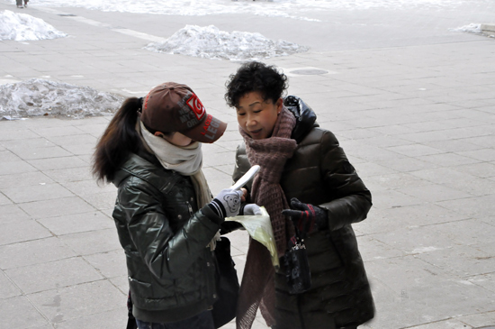 在清华大学考点外,考生家长嘱咐孩子放松