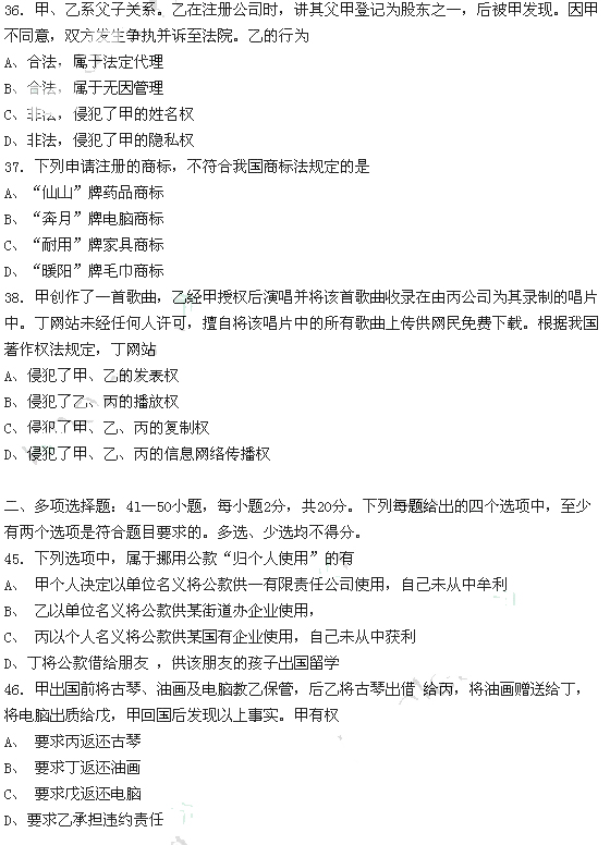 2013全国硕士研究生入学统一考试法硕(非法学)专业基础试题及答案
