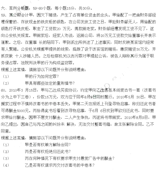 2013全国硕士研究生入学统一考试法硕(非法学)综合卷试题及答案