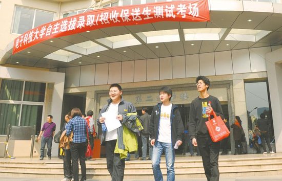 电子科技大学自主招生考试昨开考,图为考生走出考场。