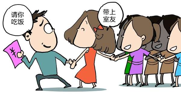 记者调查发现,时下大学生谈恋爱,男友要请女友的室友吃饭,几乎成了不成文的规矩。