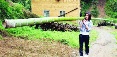 在记者的要求下,丘彩美带着记者前往山上的竹林地。路越来越难走,有的地方还不足半米宽。但就是这么一条路,丘彩美走了许多年,成百上千株毛竹从这里背出大山。“粗的一条毛竹大概40公斤左右,8元一条,一天能砍十条左右!”丘彩美指着长势喜人的毛竹告诉记者,“初中的时候为了生活费,几乎每个星期六,我都会上山砍竹子挣钱,主要是扛竹下山费时间,扛起一条七八米长的毛竹下山,要将近一个小时,但是干多了就习惯了!”