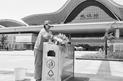 当时火车站刚启用,站前广场上到处是施工留下的泥土砖块。“地上污水横流,干活前要先换成拖鞋,运渣土、扫树叶、擦洗垃圾桶,几天下来手磨得红肿。”付莎莎说,活太累,当初招的70多人,不到一周就只剩下约15人。