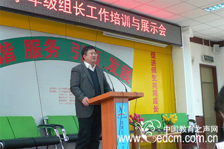 展示过后,来自班主任杂志社的赵福江社长对我们的活动给以精彩点评,充分肯定了幸福村学区这几年在加强年级组长队伍建设,促进师生和谐发展中的有益、有效尝试。朝阳区教委小教科唐京文科长讲了话,充分肯定了幸福村学区在年级组长队伍建设中取得的成绩,同时,面向全区进行了关于年级组长工作的强调和布置。
