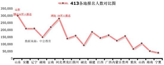 | 省份 | 413竞争比例 | 招录人数 | 报名人数 | ||||
