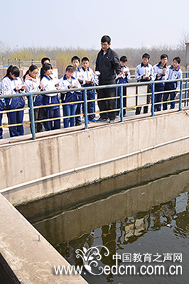 污水处理厂工作人员在给学生讲解水资源知识 3