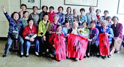 昨天上午,南京海福巷戎苑宾馆的珠海厅里,一群上了年纪的女子簇拥着一位满头银发的老者谈话。据悉,这位班主任叫吕月沧,50多年前,她在南京四女中(现人民中学)教高中语文,那些学生都是她班上的高中生。除了寿星90岁的吕月沧,其他24位学生平均年龄都在75岁左右。如今,合计“1800岁”的24位当年的女学生从四面八方赶来道贺,其中还有一位从香港赶来的。