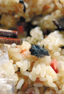 吃出老鼠头的阮同学,是该校的高二学生。他告诉记者,他是在昨天早上6点40分左右买的糯米饭。因为快要上课了,就直接带到了教室,“我吃了一口,忽然看到饭里面有颗小小的黑东西。仔细看一下,是个老鼠头。”