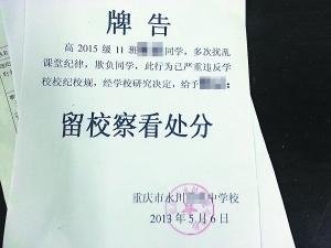 学校对学生的处分张贴在公告栏