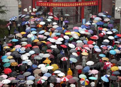 高考那天,爸爸把我送进了考场,看着警戒线外爸爸的背影,看着和我一起踏进考场的同学们,突然有种落泪的冲动,不是紧张,只是眼角润湿了眼眶模糊了。然后,忘记了所有,全心考试,一场比一场冷静。