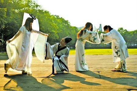 昨日,重庆大学A区,同学们穿古装拍毕业照。 记者 李化 摄