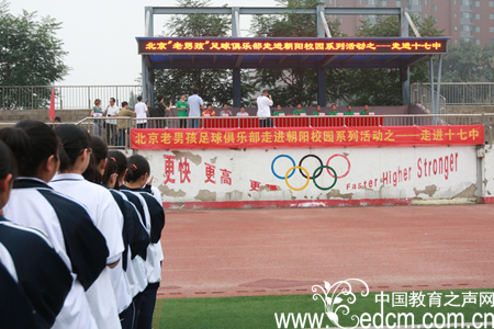十七中高中部学生足球队在历届朝阳区中小学生足球比赛中的骄人战绩,使得十七中有幸成为北京老男孩足球俱乐部走进朝阳校园系列活动九站之中的第一站。相信老男孩的球星们会把中国运动员顽强拼搏的体育精神带给每一位十七学子,让孩子们更加热爱足球运动,以更加优异的成绩驰骋绿茵场,同时,把这种永不服输的精神带进课堂(黄达)。