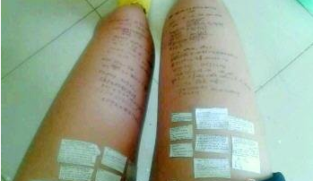 “临近考试了,还有好多数学公式没背过,这两条腿就是考场上的救命稻草了。”小孙直接告诉记者,“我们班有的女同学为了考试作弊,在考试的时候会穿裙子,这样既方便又好抄,最主要的是监考老师抓不到。”