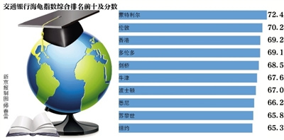 “海龟指数”是将全球80个城市就读本科的留学生获得的潜在回报做出排名。“海龟指数”考察的因素不仅包括了该城市大学的教育回报、留学生毕业后的工作机会及社会体验等,还考虑到了留学生的父母或家人在其所在城市投资金融和地产方面的便利化和回报。综合上述因素,蒙特利尔因其教育质量高、移民政策友好以及能够向留学生提供丰富的毕业后工作经历等优势居首。