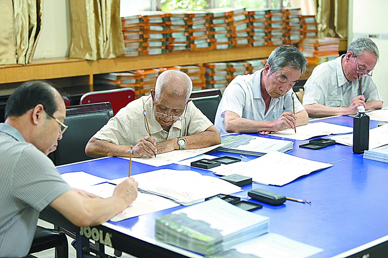 他介绍,以往是请本科生手写,但今年专门邀请、组织校书画研究会一批离退休老教授和书画家题写通知书,让通知书的书法艺术性进一步增强,更具有收藏意义。放弃休息时间参与手写的该校书画研究会会长贾温性老师说,其实早在1977年和1978年,他在陕西师范大学数学系时就曾经用毛笔书写过录取通知书。这次他们组织了六七位离退休老教授和书画家,分别用楷书、行书、隶书三种书体题写通知书。年龄最小的贾温性老师今年60岁,最年长的文占绅老师今年已经80岁高龄。每人每天书写100多份,两天时间就完成了陕西师大提前录取批次1300多名学生入学通知书的书写。