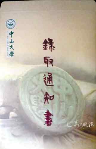 广东尽管没有毛笔手写通知书,但“手写体”已在江湖使用多年。2011年,中大开始使用陈炜湛教授亲笔书写的篆体字“录取通知书”印在封面上,纪念价值颇足。记者获悉,该校今年的录取通知书仍将采用这一“手写体”。陈炜湛1962年到中山大学中文系攻读研究生,从容庚、商承祚教授治古文字学,近年来致力于古文字的普及工作。