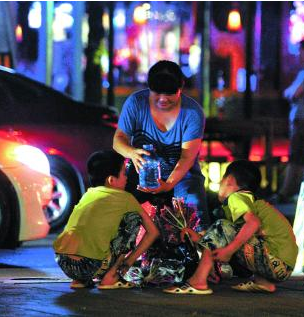 全家老小出动 孩子卖花多非自愿