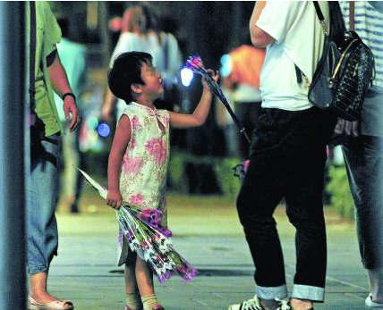 8岁半的女孩灿灿说父母答应她花卖得多就带她去欢乐谷玩,记者问她爸妈在哪里,她说,“我妈妈也在卖花,我爸爸在家玩手机。”