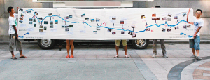 渭河全长818公里,队员们徒步或者乘坐火车、汽车到达渭河沿岸市县,其中徒步行走240余公里。为了不耽误行程,尽可能地全面看到渭河,同学们每天早晨6点起床,晚上则要工作到11点。