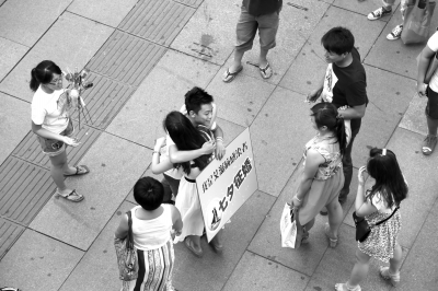 艾滋病感染者西单街头征婚。记者王海欣摄
