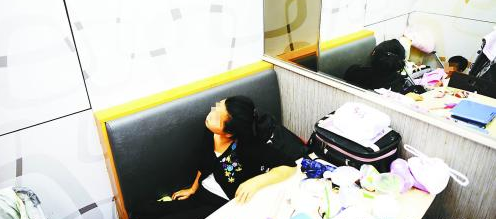 小珊:来的第一天我是在救助站住的,后来又在派出所睡了两晚,但是那里太吵了,孩子根本没办法睡觉,我就走了。再后来我看到肯德基是24小时营业的,就去试试。本来我还担心他们会赶我,但我睡了好几天都没人赶我,我就一直待到了现在。