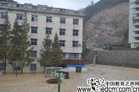 暴雨持续中,石门中学被淹