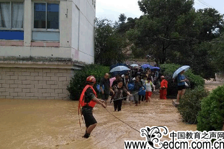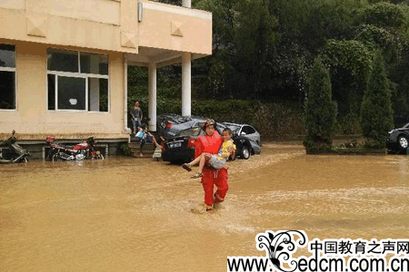 浙江青田一学校被淹 消防官兵解救71人