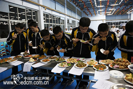 现场烹饪环节结束后,个参赛组组长对本组参赛作品的名称、制作方法、营养搭配等进行了详细介绍。随后,学生评委们依次上前,拿起餐具,根据色、味、型、营养性等标准对菜肴进行了细致品评和对比。经过1个多小时的比赛和综合评定,小评委们最终一致评选出了他们喜欢的珍品菜肴。最后,学生代表还为获奖选手颁发了奖品。各餐厅参赛选手也对参赛的菜肴进行品尝,并相互介绍经验,切磋技艺。