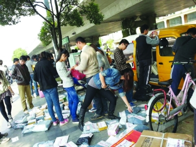校门外的空地上堆满了快递,学生们个个埋头苦找自己的“宝贝”。对于快递数量的日益增加,苏州各高校的做法基本一致,即允许快递在校门外派送,不能自行进入学校。