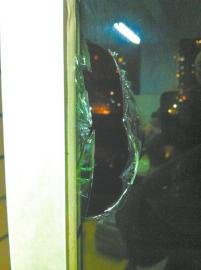 3-2教室的玻璃被击破,留下一个大窟窿