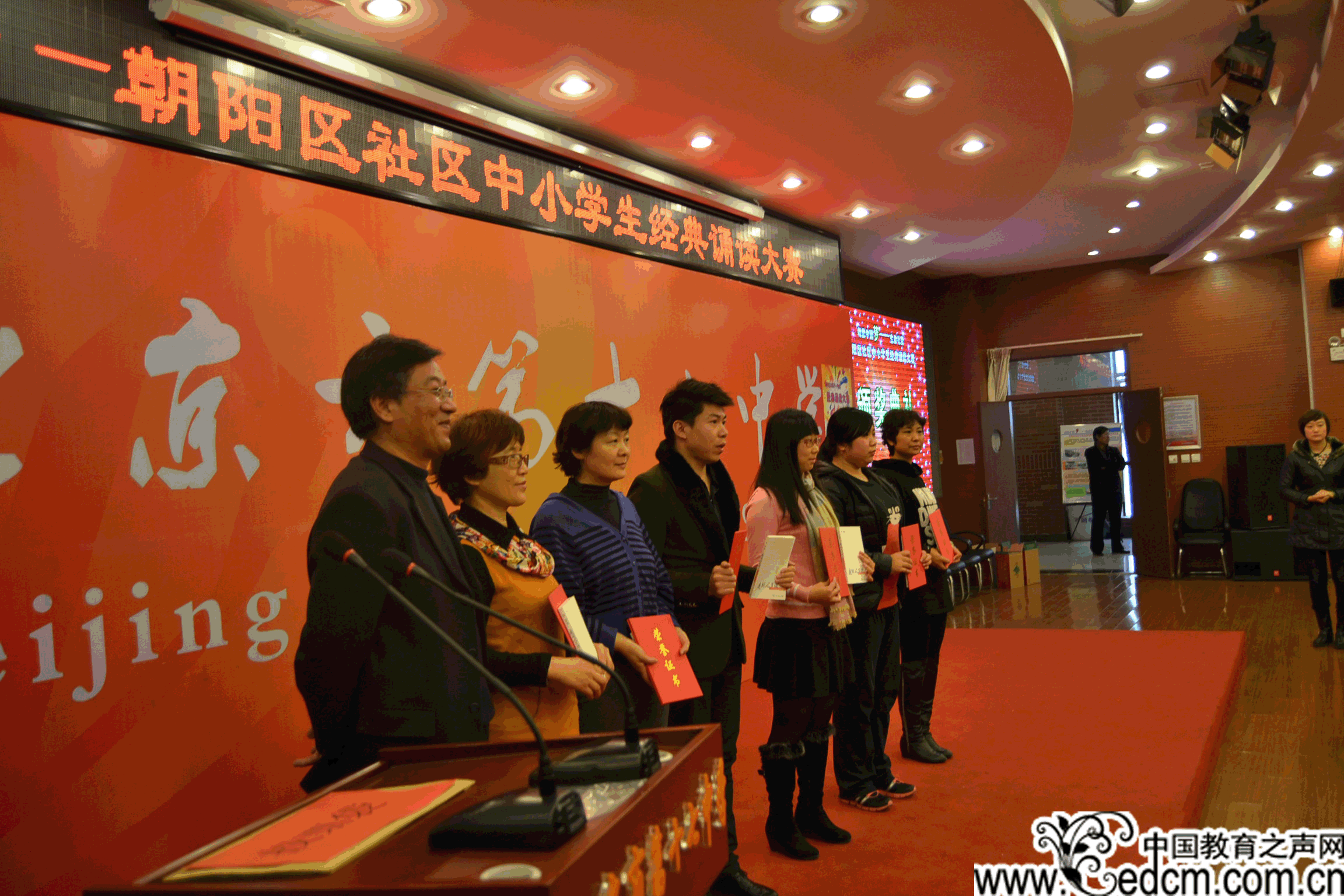 社区学院社区教育处主任孙国华,项目中心主任郭增荣,教委社区科科长韩斌、靳国立老师,金路之声CEO徐建娟,朝阳区社区教育培训中心主任韩寅生、副主任石立华,十七中书记吕旭钧、副校长张金龙、主任张素燕,虎城中学德育副校长严家格,楼梓庄中学副校长刘跃刚,枣营中学工会主席刘秀玲 ,枣营小学副校长黄乃丽,小红门小学德育主任夏莹莹以及中国青年网、朝阳教育报媒体朋友们出席了本次颁奖典礼并为获奖的小选手们颁奖。