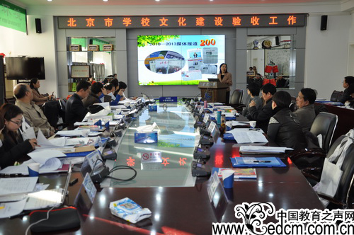 本次验收工作主要听取了朝阳区各个参评学校的工作汇报,并实地考察了白家庄小学的校园环境建设和学生社团活动,并通过座谈的方式对师生发展情况和学校文化建设的成效进行了具体的了解。依据北京市中小学学校文化建设示范校的验收标准,白家庄小学的校长祖雪媛以《让“尊重”理念引领学校发展》为题,从学校的历史文化建设、观念文化建设、制度文化建设、活动文化建设等七个方面对“尊重”教育的文化实施与成果进行了汇报,充分展示了白家庄小学“尊重教育具体化、尊重教育课程化、尊重教育行为化”的办学思路和文化内涵。验收组人员对学校文化建设的取得了各方面工作成效给予了充分的肯定。