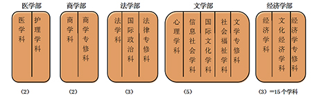 比较文化研究生院、商务研究生院、心理学研究生院、法务研究生院、医学研究生院