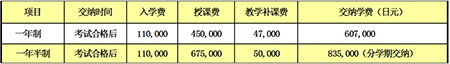 项目交纳时间入学费授课费教学补课费交纳学费(日元)