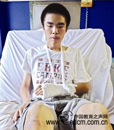 小黄今年19岁,是本地人。昨天下午,在龙海中医院,他左手臂上缠着石膏,身上还有擦伤,向记者讲述了当天的遭遇。