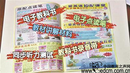 实际上,在今年9月1日就有广东肇庆的网友“我爱北京1232014”在天涯论坛发帖并贴出多张照片,显示其读初一的女儿开学领到的英语课本教材内出现教科书录音带、同步学案、英汉互动讲解、教材讲解、专用词典、同步听力训练、同步练测考,还有点读笔、多媒体互动电子教科书等广告。活页中印了《仁爱英语教材原配英语产品征订单》,还附有仁爱英语产品在广东各地的售前、售后服务电话,该教材为北京市仁爱教育研究所编著。该网友称其曾向教材的出版方北京仁爱教育研究所反映,“但对方无动于衷”。