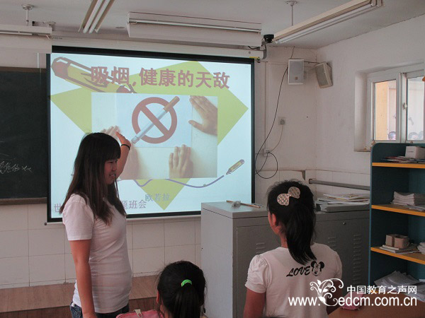 健康教育教师为学生上一节吸烟与健康的健康教育课,通过课上认识烟草、烟草的危害、烟草对人的影响,学生进一步认识吸烟对人身体的伤害及吸二手烟的危害,从而明确了要远离烟草,并劝诫家人戒烟。