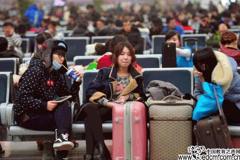 1月11日,沈阳北站候车室里准备乘坐火车回家过年的大学生。随着沈阳高校陆续开始放寒假,春节前的学生“返乡潮”拉开大幕,沈阳北站迎来出行高峰。