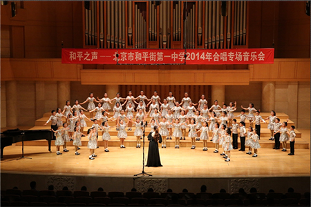 2014年3月17日下午,初春的中山音乐堂处处洋溢着欢歌笑语,由北京市朝阳区和平第一中学举办的“和平之声”—北京市和平街第一中学举行2014年合唱专场音乐会于14:00在这里隆重拉开序幕。