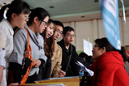 【必威体育官网网页版 3月25日消息】3月22日,几名求职的学生在兰州大学双选会上咨询。当日,2014届甘肃省毕业生春季大型“双向选择”洽谈会在兰州大学举行。近200家用人单位提供了10000多个就业岗位,前来应聘的应届毕业生人数也大大超过往年同期。据教育部统计,被称为“更难就业季”的2014年全国高校毕业生规模将达到727万人,为应对毕业前的求职潮,甘肃省内高校各种形式的招聘会将陆续举行,以拓宽高校毕业生的求职渠道。