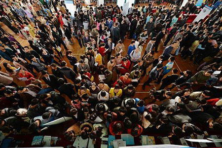 3月22日,在兰州大学举行的毕业生双选会上人潮涌动