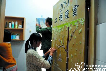 “就是男女同学互相交换寝室做设计,让另一个寝室的‘你’为别人带去不一样的惊喜,可以让他们彼此多动手,为对方多考虑。”负责此次活动的政管院江雯静同学告诉记者,这次他们开展的“触手成春,焕发新生”寝室文化风采大赛,其中的重头戏就叫“交换空间”。