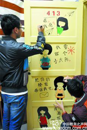 “最喜欢这个Q版画。”4个女生回到自己寝室后,对门口的Q版头像很是喜欢,纷纷合影留念。