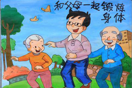 (图为,新二十四孝图中“陪父母一起锻炼身体”)