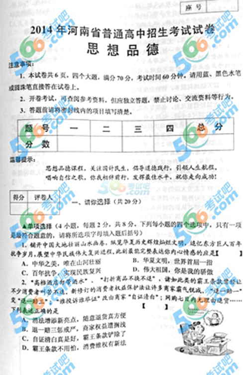 【必威体育官网网页版 6月27日消息】2014年河南中考思想品德试题及答案。