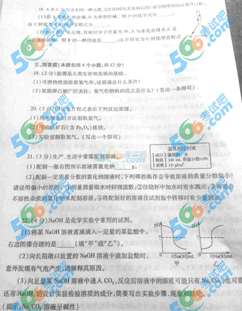 2014年河南中考化学试题及答案