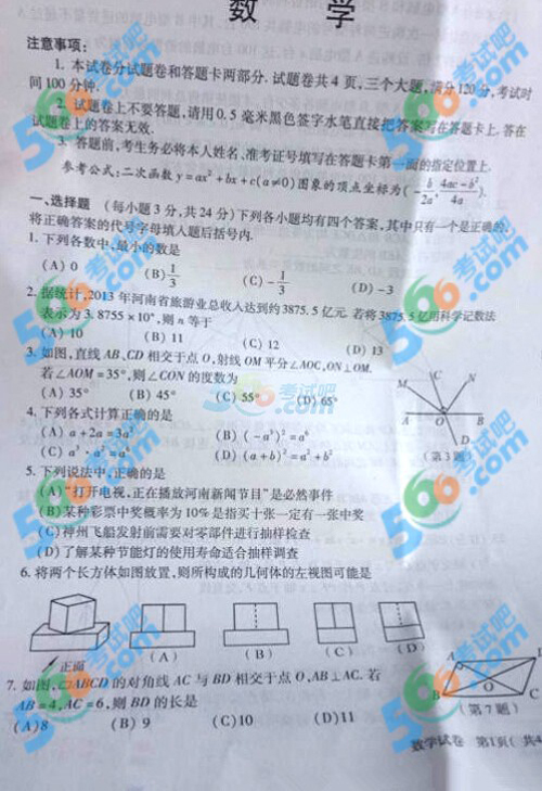 【必威体育官网网页版 6月27日消息】2014年河南中考数学试题。