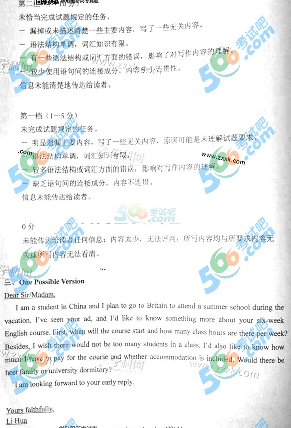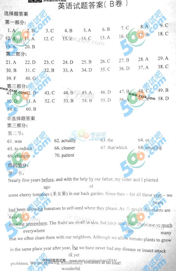 2014年高考大纲卷英语试题及答案(完整)