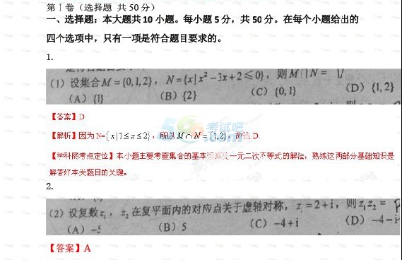 2014年四川高考数学答案(文科官方版)